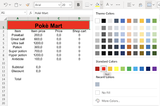 Note: Coloring the input fields can be helpful for those who will use the spreadsheet. In this case we marked the input fields with the yellow color: ffcb05.