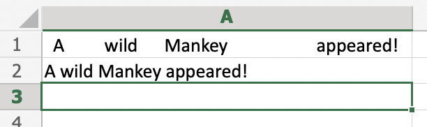 Note: Irregular spacing is unnecessary spacing within the dataset that can occur before, after or between text or numbers within a cell.