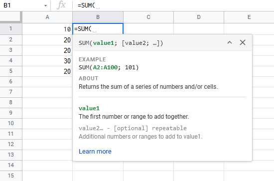 Addition uses the + symbol in Google Sheets, and is also known as plus.