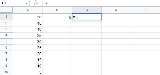 Let's keep the numbers from the last exercise. If you did last exercise, remove the value in B1.